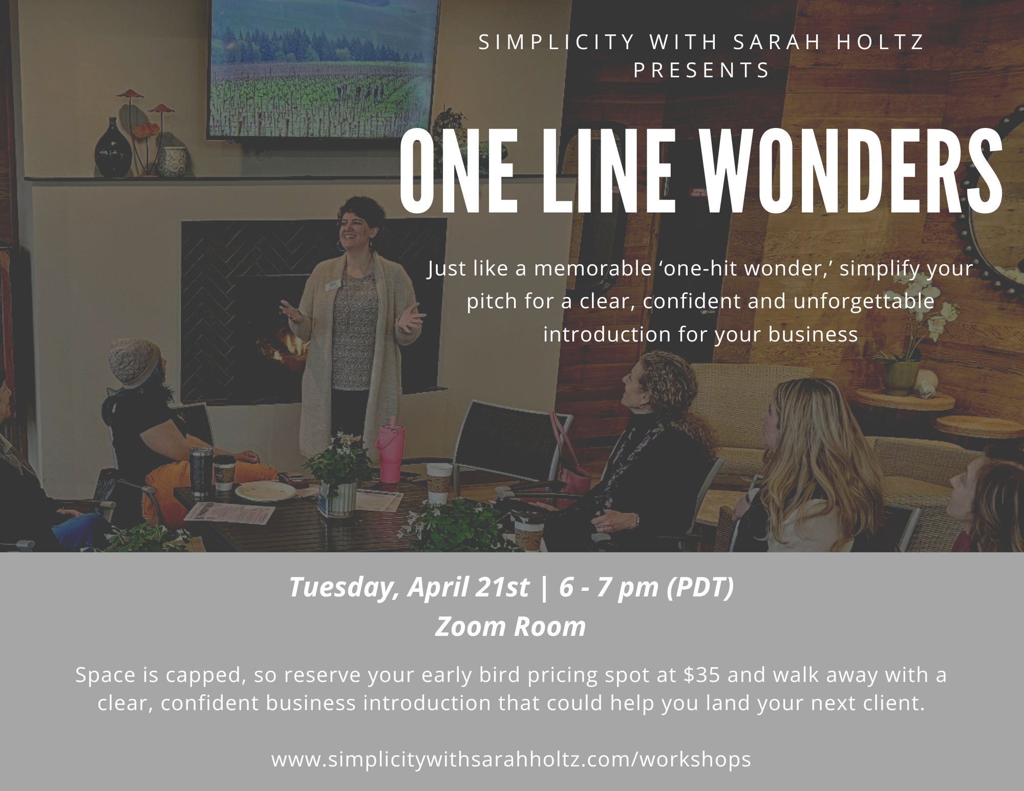Space is capped, so reserve your early bird pricing spot at $35 and walk away with a clear, confident business introduction that could help you land your next client.