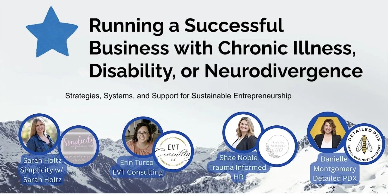 Join us - either in person or on zoom - for this workshop that is aimed to help business owners with disabilities build sustainable, profitable businesses that honor their energy and capacity.